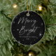 Modern Merry and Bright Script Black Photo Ceramic Tree Decoration