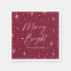 Modern holiday paper napkins featuring "Merry and Bright" displayed in a hand-lettered script surrounded by a border of white stars with a burgundy background. Personalise the merry and bright napkins by adding your family name or custom text below. The festive napkins are perfect to use for holiday parties, Christmas dinners, and other holiday events.