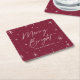 Modern Merry and Bright Script Burgundy Holiday Square Paper Coaster