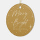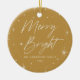 Modern Merry and Bright Script Gold Photo Ceramic Tree Decoration