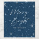 Modern holiday wine labels featuring "Merry and Bright" in a white hand-lettered script encircled by a border of stars with a navy blue background. Personalise the merry and bright wine labels by adding your family name and the year below.
