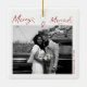 Modern Merry and Married Newlywed Script Christmas Ceramic Ornament
