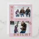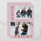 Modern Merry & Bright 2 Photo Pink Elegant Foil Holiday Card with bold typography. The images are shown for illustration purpose only replace them with your photos. Personalise it with your family name, year, and photos.