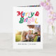 Get in the Christmas spirit with our Modern Merry & Bright Colourful Retro Photo Card! This card features a fun pattern of merry & bright written in colourful retro typography, making it perfect for all the Christmas lovers in your life. Customise the front of the card with your favourite Christmas photo and your family name, and add a special message on the inside on a matching colourful striped pattern on a navy blue background. With this card, you can make your holiday greetings bright and joyful! Spread some holiday cheer and make your loved ones feel the Christmas spirit. Let our Modern Merry & Bright Colourful Retro Photo Card be the most memorable one this Christmas! Contact designer for matching products. Elevate your family's style with our trendy collection of matching products, here: https://www.zazzle.com/collections/119053752706401805 Copyright berry design, all rights reserved.
