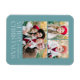 Simple and elegant holiday magnet featuring a 3 photo collage with "Merry Christmas" displayed in white modern lettering on a frosted blue background. Personalise the Christmas photo magnet by adding your photos and name.