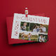 Modern Merry Christmas 4 Photo Red Typography Holiday Card