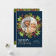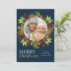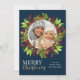 Modern Merry Christmas Botanical Photo Blue Holiday Card