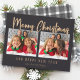 Modern Merry Christmas Bubble Letters Plaid Photo Holiday Card
