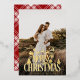 Modern Merry Christmas Family Photo Name RED TARTAN