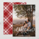 Modern Merry Christmas Family Photo Name RED TARTAN