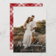 Modern Merry Christmas Family Photo Name RED TARTAN