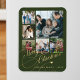 Elegant stylish Merry Christmas faux gold classic calligraphy script six family photos green holiday festive keepsake magnet with your custom personalised text.
