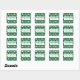 Festive holiday stickers feature a white geometric tree pattern on a green background. In a white rectangle across the centre, it reads, "Merry Christmas" in a green script font above your name in a simple green font. Personalise it by adding a custom greeting, family name and/or the year in the sidebar.