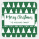 Modern Merry Christmas Green White Tree Pattern Square Sticker