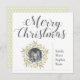 Modern Merry Christmas design with the text 'Merry Christmas' in elegant calligraphy and your personal family photo adorned by a winter greenery leaves wreath on a green background. The back of the card is green with a white Christmas tree pattern. Simply add your names and photo. If you need any help or matching products please contact us through our store.