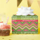 The patterns and colours include a bright green and red chevrons. You can add your family name or other text to make it a custom wrap.