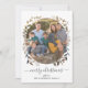 Modern Merry Christmas Love Script Wreath 2 Photo Holiday Card