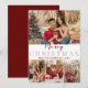 Modern Merry Christmas MInimalist 4 Photo Red Holiday Card