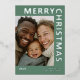 Shine bright this holiday season with this foil “Merry Christmas” photo design featuring bold metallic lettering that frames your favorite family photo. The elegant foil finish adds a festive touch to the clean, modern layout, complemented by a soft green background. Customizable with your family name, names, and year, this contemporary photo card is the perfect way to share holiday joy with a touch of shimmer.
