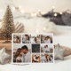 Modern Christmas card features photos in photo collage grid layout, with your personal holiday message and names in gold foil on rich charcoal black. A simple and minimal design that shows off your favourite photos. Cards reverse to a white snowflake pattern.