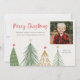 Celebrate the season with modern and merry Christmas photo cards that friends and family will be sure to love! The cards feature modern pine tree artwork and a message that can be customised to your liking.