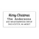 This modern self-inking rubber stamp features "Merry Christmas" in delicate script paired with your family name and return address in clean uppercase typography. Designed to add a festive touch to holiday card envelopes, Christmas mailings, and shipped packages. A polished seasonal tool for families sending greeting cards throughout the holiday season.