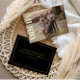 Share your holiday wishes in style with this modern minimal one photo Christmas card. Designed to make your photo the centerpiece, this card blends timeless elegance with a clean, festive look. With customisable text in shimmering gold foil and personalised space on the back for your greeting and family name in golden yellow text atop a modern chic black background, it’s the perfect way to spread cheer this season.
