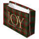 Modern Merry Christmas script Joy tartan red Large Gift Bag