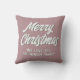 Modern Merry Christmas Script Pink Family Holiday Throw Pillow. Trendy white script. You can change any text on the pillow.