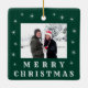 Modern Merry Christmas Snow Family Photo Green Ceramic Ornament