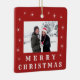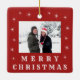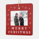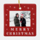 Modern Merry Christmas Snow Family Photo Red Ceramic Ornament