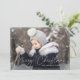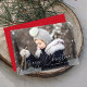 Send festive cheer with this modern Merry Christmas photo card featuring your favourite horizontal picture bordered by subtle snow flurries. “Merry Christmas” is displayed in stylish white calligraphy script with your family’s name shown below. The back features a red background with white snow dots, or you can customise the colour to fit your style. A simple yet elegant holiday design that’s perfect for sharing your Christmas greetings.