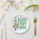 Modern and minimalist style holiday design features Christmas tree with red and green ball ornaments, green "Merry Every Thing" text and white background.