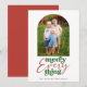 Modern Merry Everything Boho Arch Holiday Photo Christmas Cards featuring your photo in our chic geometric arch, accompanied by modern, trendy font typography of Merry Everything! Traditional shades of Christmas red and green are perfect for your contemporary aesthetic! Please contact us at cedarandstring@gmail.com if you need assistance with the design or matching products.