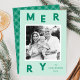 Modern Merry Letters Mint & Green Photo Holiday Card