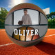 Modern Metallic Orange Name Basketball with Photo. Personalise it with your name and photo. The design has an abstract orange basketball ball in a metallic look. This custom basketball is a perfect gift.