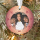 Modern Metallic Red Snowflake Family Photo Ornament. Background in metallic look in orange and red gradient colours with red snowflakes. Add your photo and customise the year number. Modern Christmas holiday keepsake for family and friends.