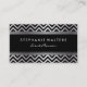 Modern Metallic Silver Chevron and Black Business Card