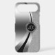 Silver tones shiny metallic design,stainless steel look with white diamonds glitter. Custom and optional monogram with black accents. Like all designs on zazzle this is not actual glitter or metallic finish, but just an image.