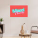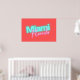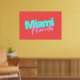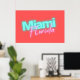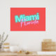 Modern and colorful typographic design features "Miami Florida" in aqua and pink neon text on salmon / coral background