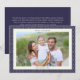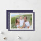 This modern Hanukkah design features a navy blue geometric border with a subtle mid-century vibe and clean typography. The layout highlights a family photo in a simple horizontal orientation, perfect for sending warm wishes during the Festival of Lights. Personalise the message on the back to make it uniquely yours.