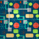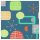 Fresh bright and colorful design inspired by retro modern mid century patterns. A mix of geometric shapes and atomic starbursts in tones of green, orange, teal, yellow, gray, blue and white.
