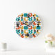 Modern Mid Century Geometric Colourful Retro Large Clock