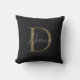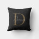 Modern Midnight Black Mossy Gold Script Monogram Throw Pillow