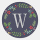 Modern Midnight Blue Monogram Holiday Wreath Classic Round Sticker