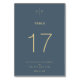 This simple, minimalistic, and modern wedding table number card features a monogram with modern lettering in gold on midnight blue / navy blue background. Change the background colour and personalise it for your needs. You can find matching products at my store.