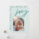 Modern minimal script calligraphy joy 1 photo mint green holiday card.