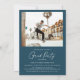 Modern Minimal 2 Photo Navy Blue Graduation Party Invitation