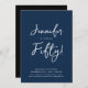 Modern Minimal 50th Birthday Script Navy Blue Invitation