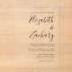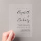 This simple modern wedding invitation features black text on your choice of a clear or frosted background. Add the names of the bride and groom in stylish handwriting calligraphy and the details in sans serif font.